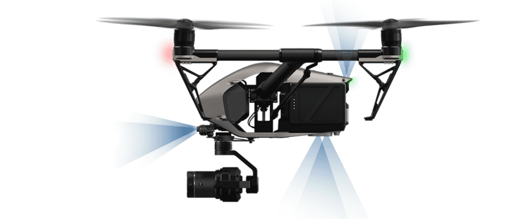 De série, l'Inspire 2 est livré avec une caméra FPV 2 axes, une portée radio de 3,5km avec un retour image en 1080p. Il peut également atteindre les 94 km/h grâce à sa puissance élevée, son châssis robuste et léger en magnésium et aluminium. La redondance batteries, IMU et baromètres font du DJI Inspire 2 un drone extrêmement fiable. Ses nombreux capteurs de proximité lui offrent une vision panoramique des obstacles qui l’entourent pour pouvoir les éviter efficacement.
